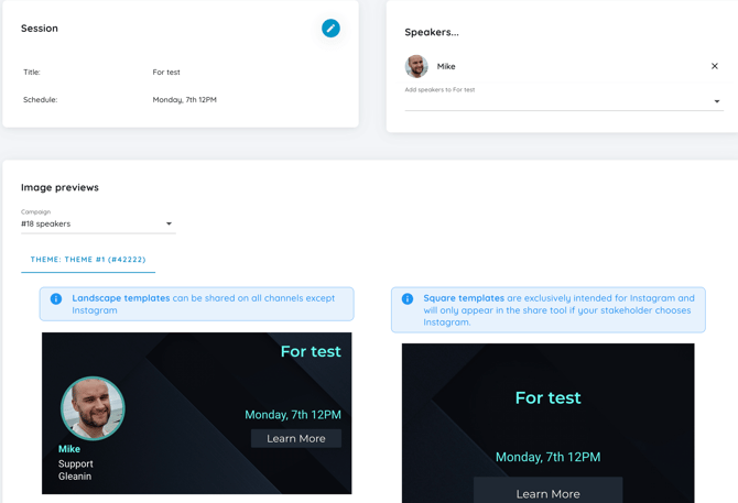 - Once the speaker is assigned, you will be able to see all of the images available for this session in the Image preview section below